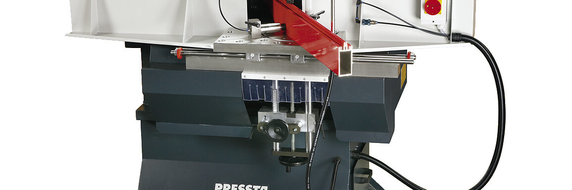 Horizontal end milling machine with manual feed to machine the ends of aluminium or PVC profiles use of milling disks, cutter blocks or special shaped…
