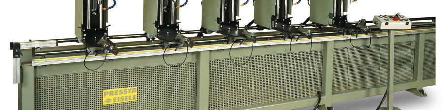Drilling units with stand and linear guides in X-direction, shafts for manual adjustment of drilling height, working range 125 mm (drill to back wall), Positioning in X and Y direction by scale, Profile height max. 200 mm