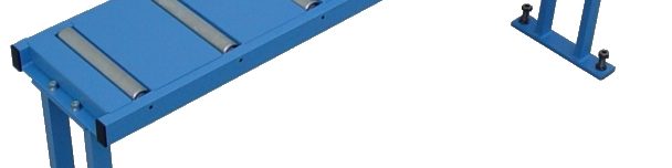Our roller conveyor series RB offers the simplest solution for a manual and stable material supply station for sawing or punching centers. The different versions of our RB roller conveyors can all be heigth adjusted, are available in different widths and lengths and can either be supplied with standard plastic or optional steel rolls. Further options include metal filler sheets between the rolls, fixed and movable stops and vertical rolls.