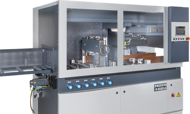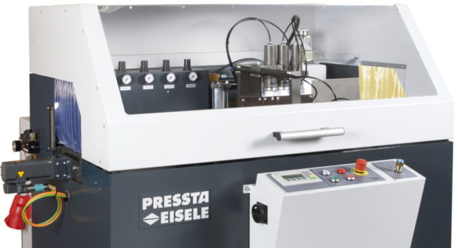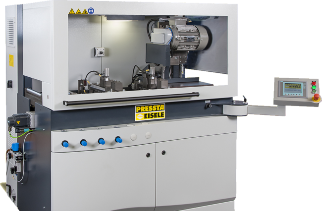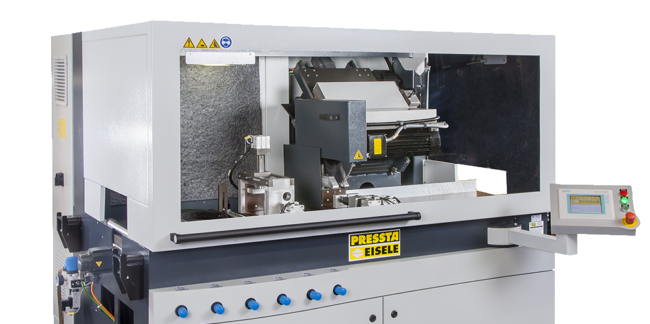 Fully automatic operation with graphic control elements. 7.5 kW drive, 400V, 50 Hz. For HM or PCD saw blades Ø550 mm, max. 2850 rpm. Servo-controlled saw feed, vertically from below. Material feed via servo-controlled ball screw drive. Control Siemens S7 with 7 “touch display. Cutting area 270 x 150 mm (W X H). Remaining piece…