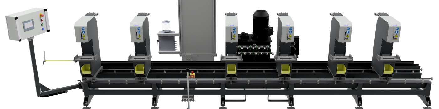 Kommandopult für einzelnes Zu- oder Abschalten der Stanzköpfe.