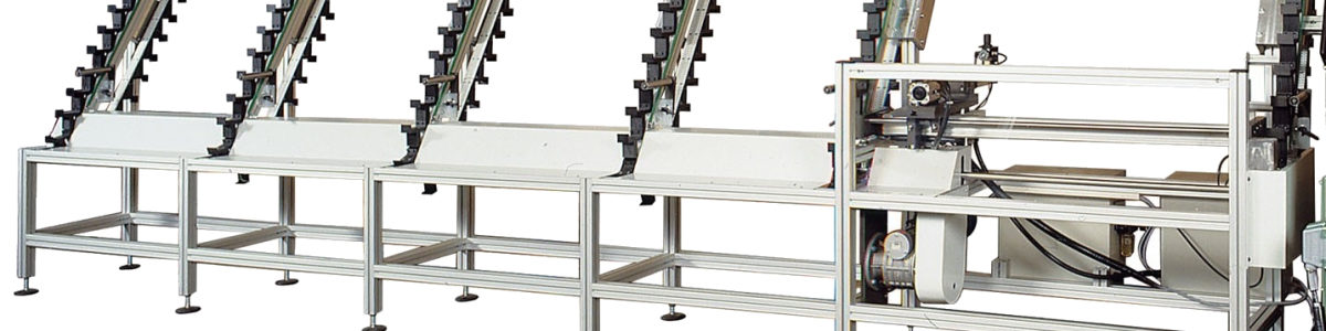 Zahnriemenförderer mit umlaufenden Fächer. 8 Fächer nutzbar. Max. Profilquerschnitt 50 x 80 mm (Höhe x Breite). Max. Profilgewicht 3 kg/m. Profillängen 2.100 – 6.500 mm. Pneumatische Greiferzange zum Einschub der Profile in den Sägeautomaten. Prospekt Project navigationZurückPrevious project:BundlademagazinNächstesNext project:Heber 100
